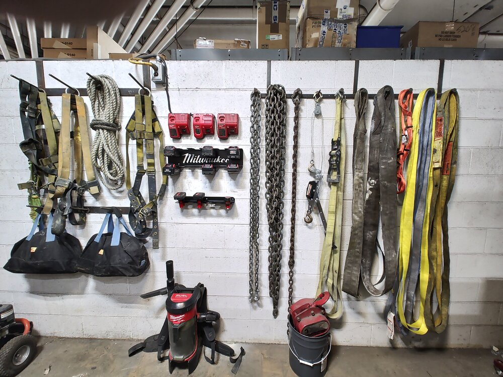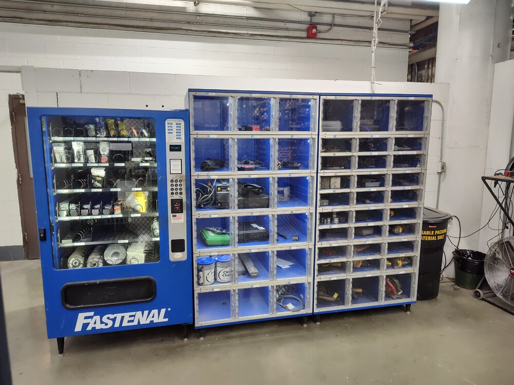 Been doing some rearranging in my department at work. I don't have any before pictures but the Fastenal vending machines were in in the tool closet where I made the new hangers, and installed the battery holders and chargers.
