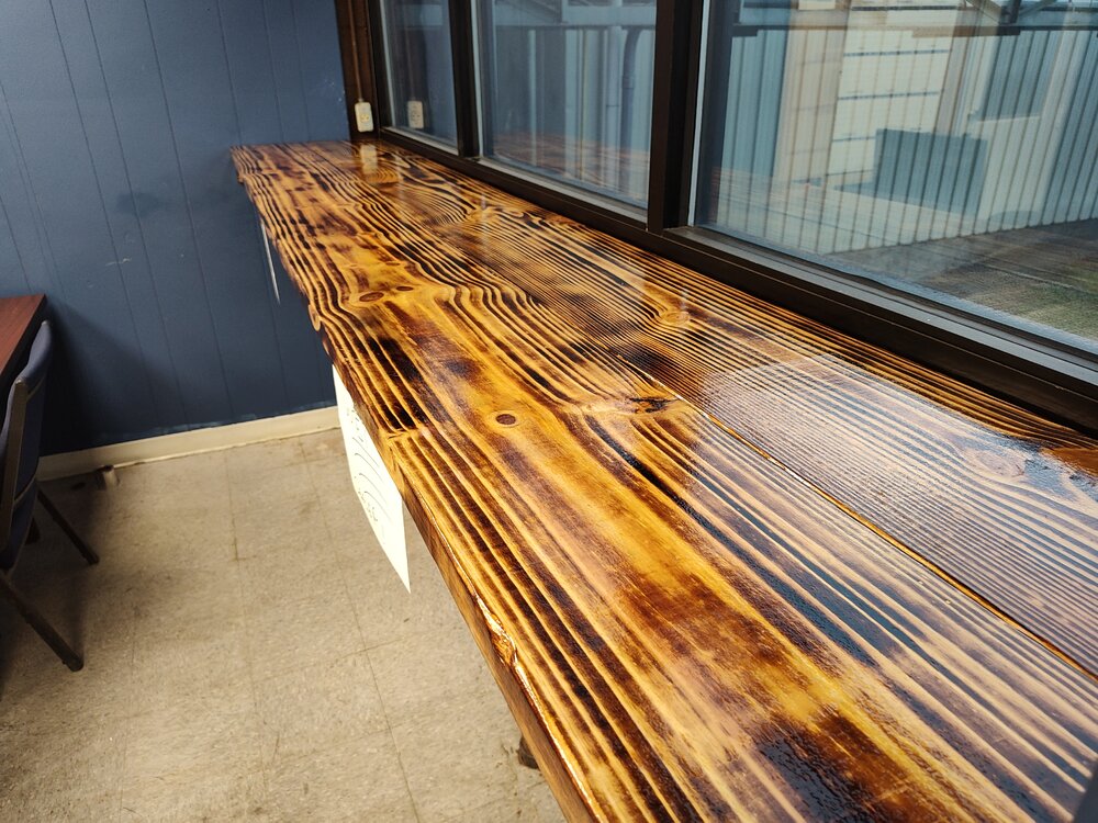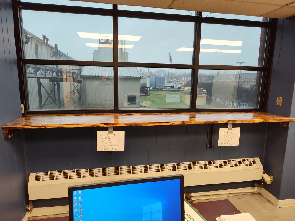 Everything that's now hanging was randomly tossed where it would fit and could never be easily gotten. The wooden bar I built for my guys to eat lunch at and enjoy a window view, while on break.