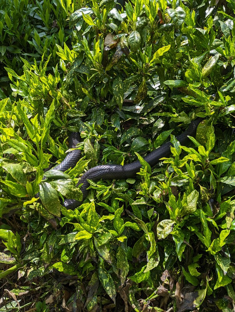 It wasn't happy but not terribly unhappy with me relocating it to the bushes.So just to recap, you caught a black snake and put it in the bush so Shawn wouldnt find it.We have a 6'er around that we've relocated a time or two (usually from the neighbor's deck) but I found a 3'er in the basement two weekends ago.It was in amongst the rakes and tried to go behind the toolbox when I found it. It was either try to catch it or explain to @shawn that there was a snake in his toolbox.