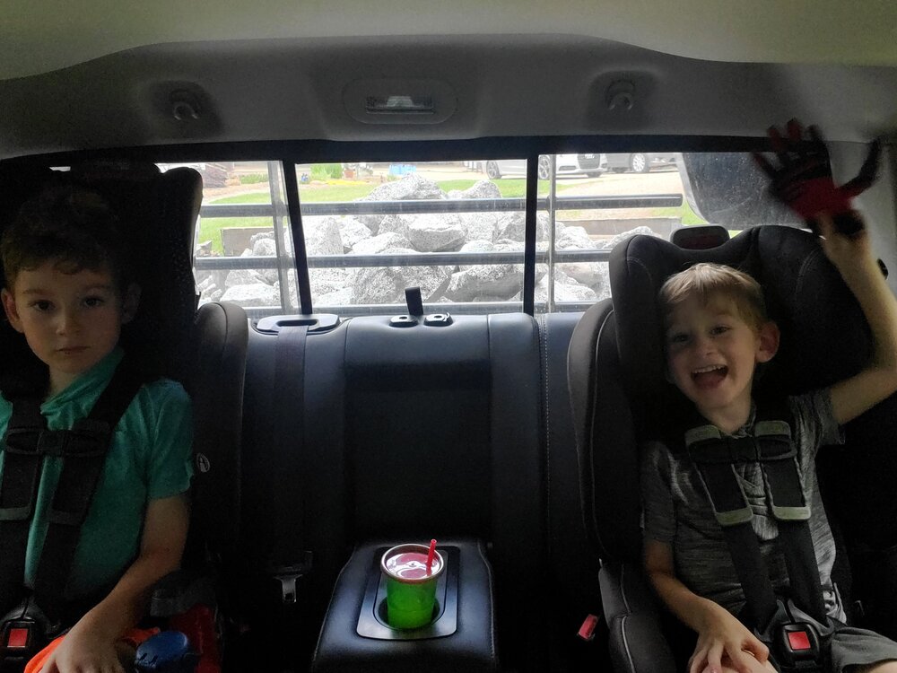 They held up better than I expected, and earned $20 and $5 respectively. Before we started, I gave the 8 year old the option of $8hr or $20 for the job. He wisely chose the $20 because he "didn't think he would be able to do it long enough to make more" at $8/hr.Taking the kids to go work out. They have no idea what they've got coming, ha ha ha! Hopefully they're still this happy when we get done putting out 4 tons of rip rap...