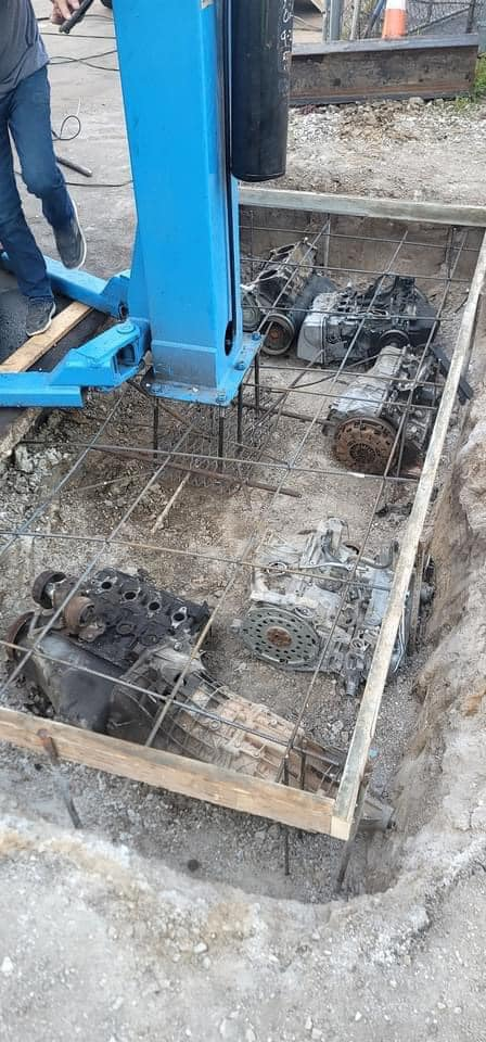 Not sure about how that would all work for a driveway (refrigerator shelves???) but for a lift mount in that pic I posted, the potential for those motor blocks to not fill in with cement would scare the hell out of me. I try to do stuff right and it falls down, stuff like that picture will probably last forever no problem. Sigh.......