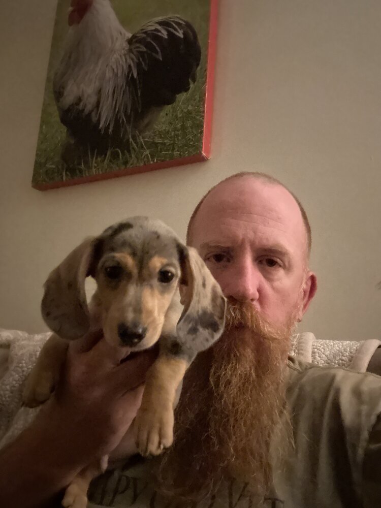 Only one little winky left to go home from our litter. He leaves on Saturday so he’s getting some extra snuggles cause he’s all “alone”. All our female dogs are playing mom to him but he doesn’t have any playmates until his new house. He may only be 3.2 lbs but he has a voice on him already!! View attachment 401892