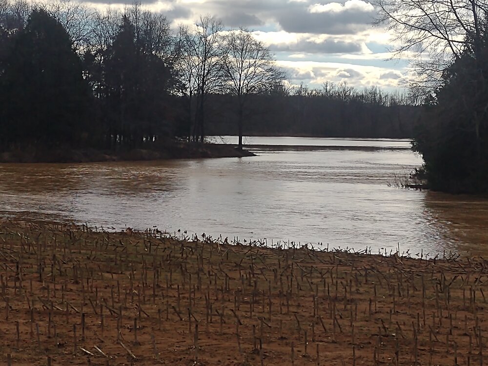 View attachment 410326just around this point I can glass about 800 yards. It's all under water. For this to happen it starts at the bridge. Bad thing as it does it blows out a ten foot by 15 foot dike every time. Been down here around 12 years. It was about that point they had a major erosion. The repairs every since don't get good thick vegetation going, much less the rest has tree growth of all sizes do to the original age of the dirt work.