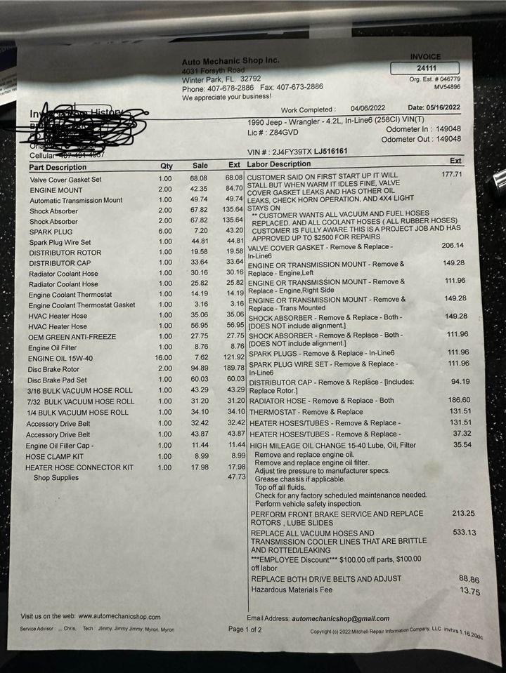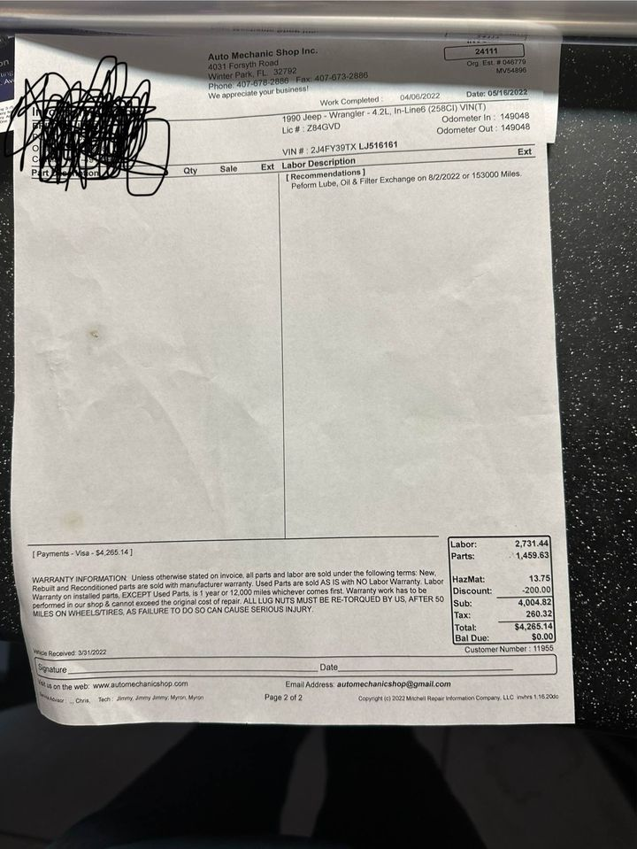 that guy got royally ripped offI was just perusing some for sale ads for a YJ and a guy posted a recent service receipt. I was blown away.