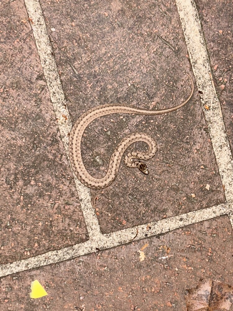 Dang dude, he’s harmless. Eats bugs, non venomous.as friends were leaving tonight, their kids stepped right over this jerk and then I saw it on the steps. One less baby snake in the world tonight.