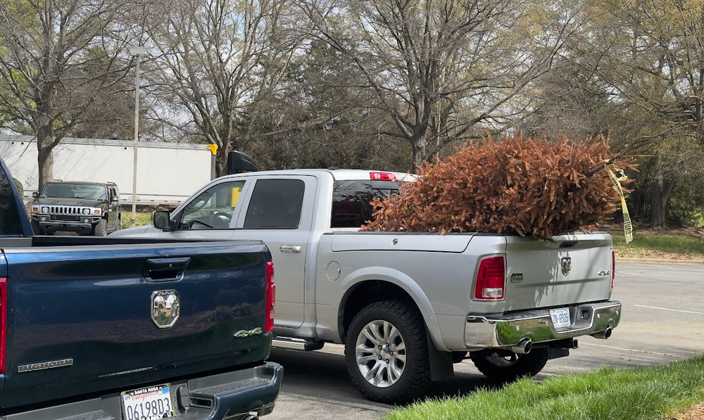 I've been eyeballing this tree in the parking lot at a Mexican restaurant in Pineville for a couple months, but they were using it as a construction barrier and had caution tape attached to it. They finally cast it aside!