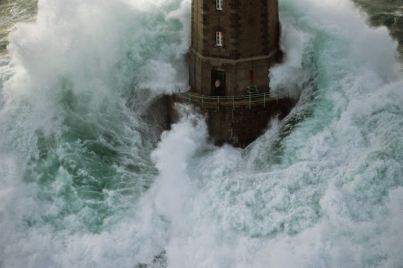 On 21 December 1989, a low pressure front coming from Ireland brought gale force winds and huge waves of 20 to 30 metres high which crashed spectacularly against the lighthouse. The waves smashed through the lower windows of the lighthouse, ripped the front door, flooded the tower and washed away the furniture. Lighthouse keeper Théodore Malgorn decided to take refuge up in the lantern room while waiting to be rescued.