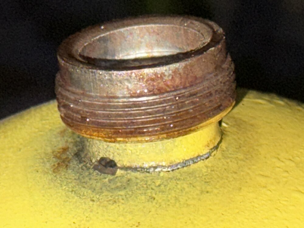 Glad you didn’t lose your eyebrows, and who knows what else!I was sweating some copper pipe tonight, and set the torch down on a low bench (20" tall). Torch tipped over and hit the floor. It was running when I set it down, but flamed out on impact. Then all the MAPP gas dumped out in short order. See the crack where the neck joins the bottle. Lucky no ka-boom.