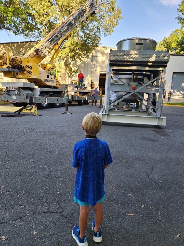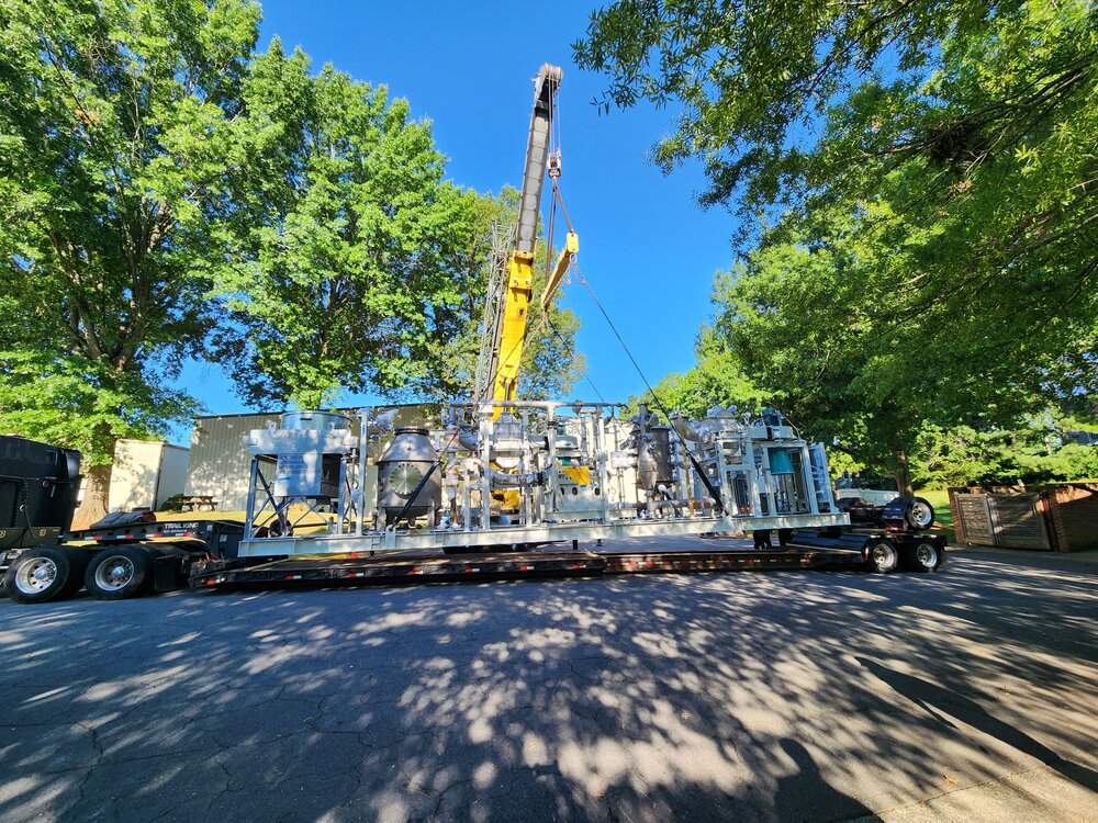 One of the vessels has a top column that is 30ish ft tall. Two heat exchangers, couple blowers, cooling tower and water pump.
