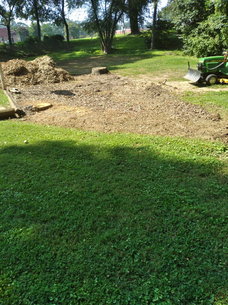 Finished up remaking neighbors mulch bed, from the tornadic storm we had a couple months back. Gardens tractors don't spread #1 packed tree grindings!