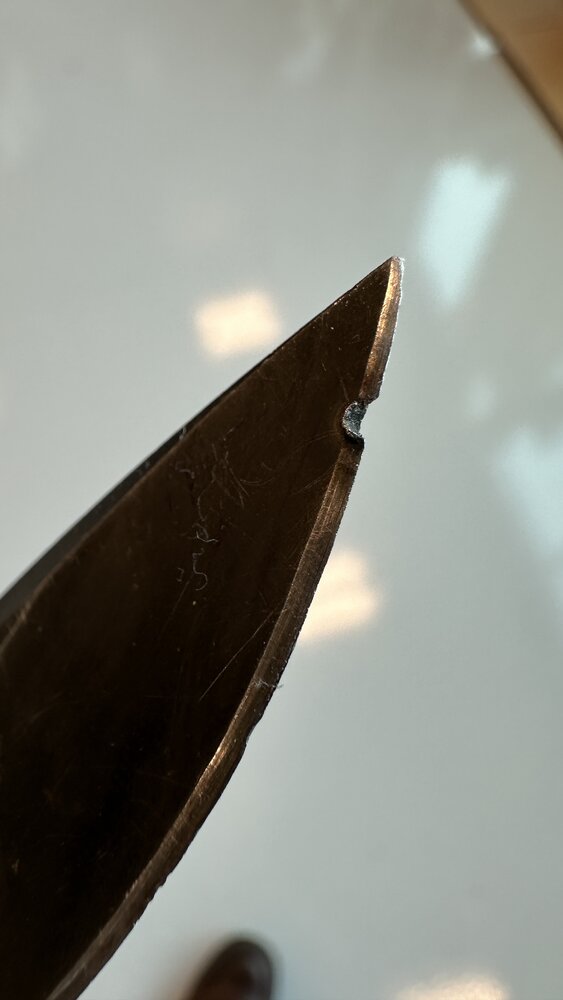 That’s some bullshit right there! That was a nasty nick!A really good friend and fellow Eagle Scout was over at the house the other day and asked to borrow my knife to fiddle with something on the sawmill. Kinda annoyed me because he’s supposedly a man and an Eagle Scout, but I figured it’ll be fine. He gives it back to me a few minutes later, folded up as one would do, and we go on about whatever it was we were doing. A few minutes later I open it up to cut something and find this!