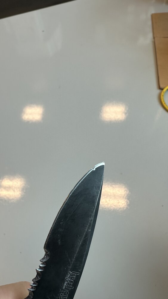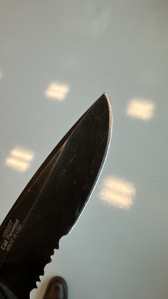 “Oh yeah, haha. Bumped a wire. It should polish out. Is that a Kershaw Blackout?”