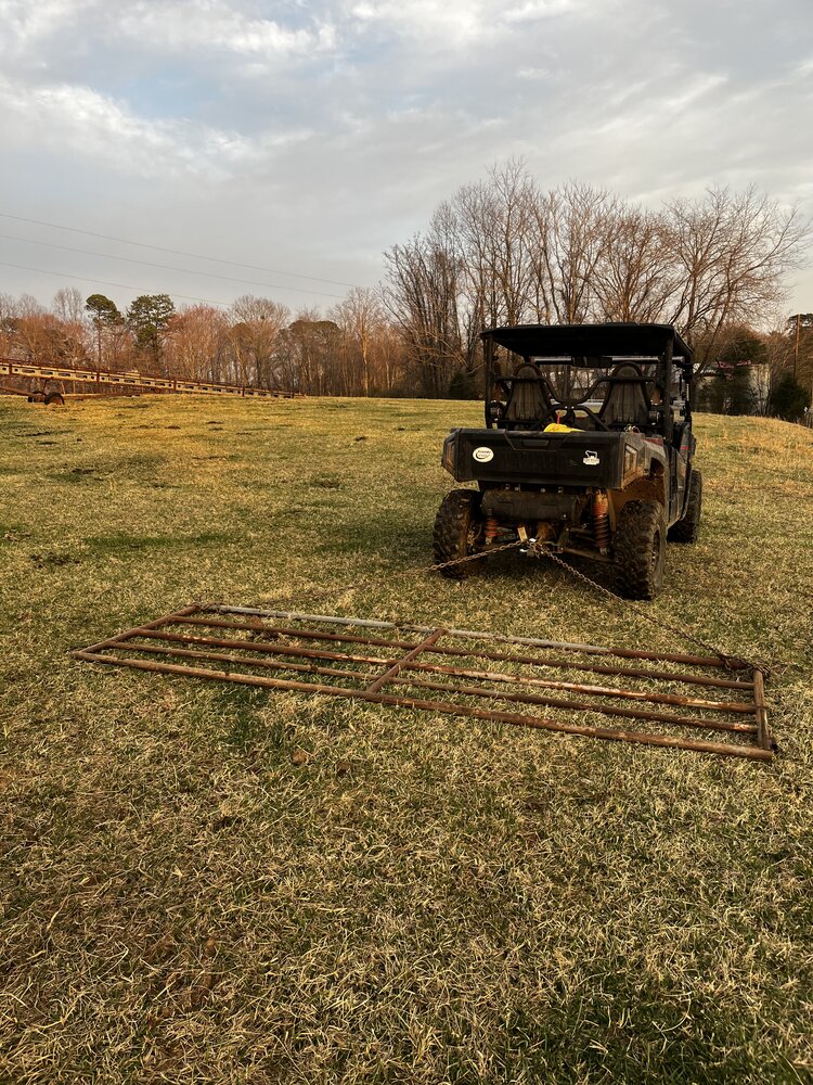 Couldn’t get my buddy’s drag in time to beat the rain that’s coming but wanted to break up all the shit in the pastures. Welcome, the Binford Shitbuster 6100. Thank god my wife’s grandfather built gates that weight a bajillion pounds and we have extras laying around 🤣
