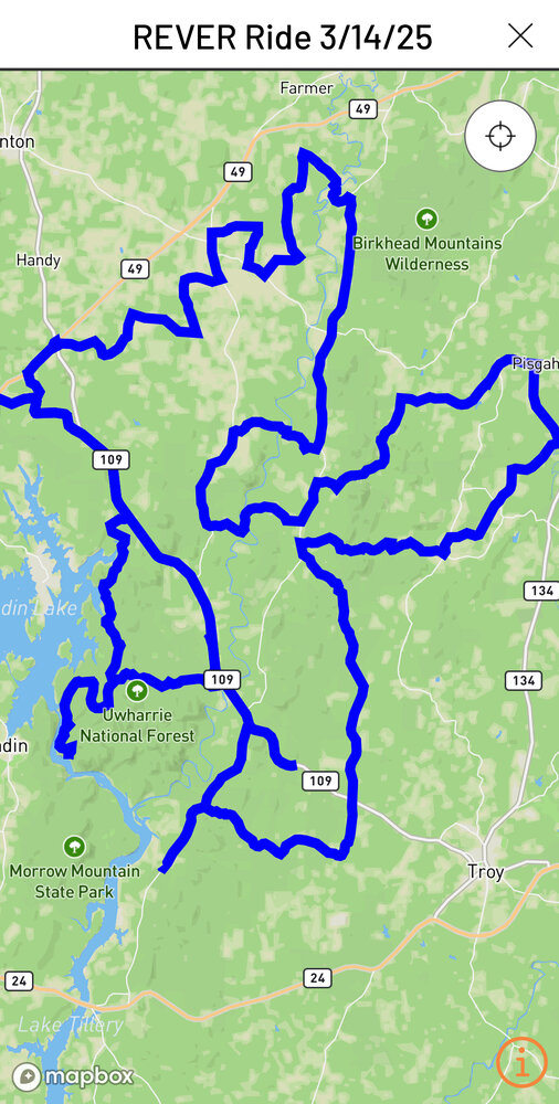 Found a FB group that had a gpx file for the “Uwharrie 100”. 100 mile loop with a good mix of blacktop and gravel. So I rode it today. Most of it I had never been on before. About 210 miles by the time I got back home.