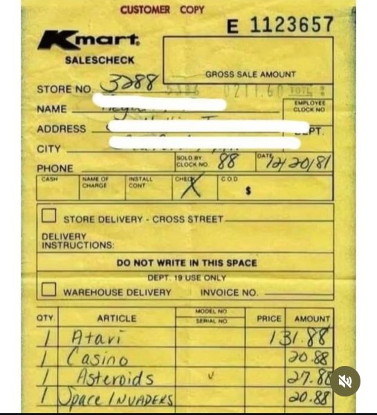 And kids these days complain about the price of video games.