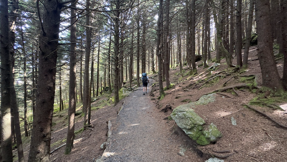 Once Andy got done washing his Fruit Loops and eating breakfast, we set out on the second leg of our journey from Overmountain to Doll Flats, about 6.5 miles. That took us over Little Hump and Hump Mountain, which was a LOT of climbing.