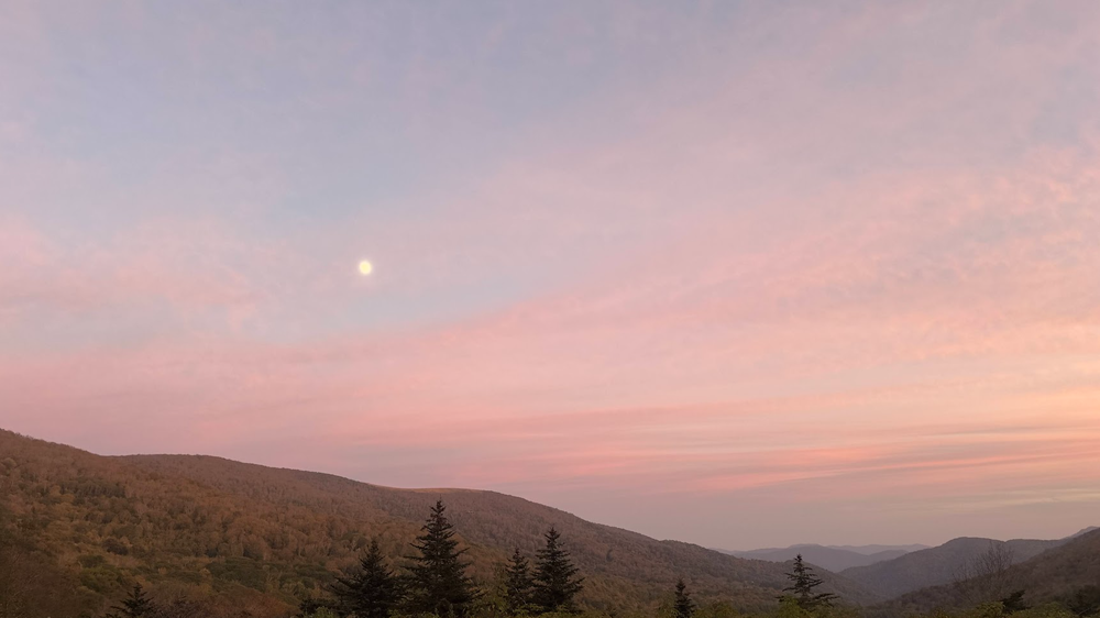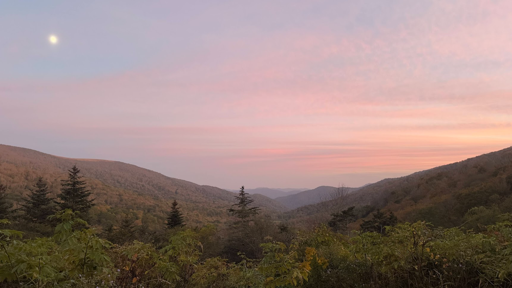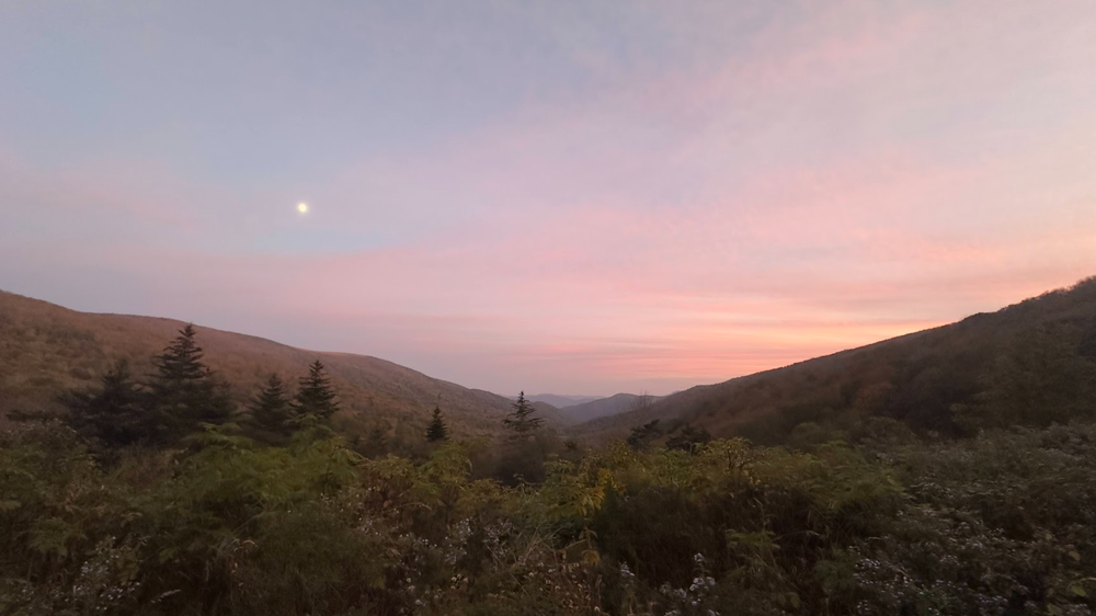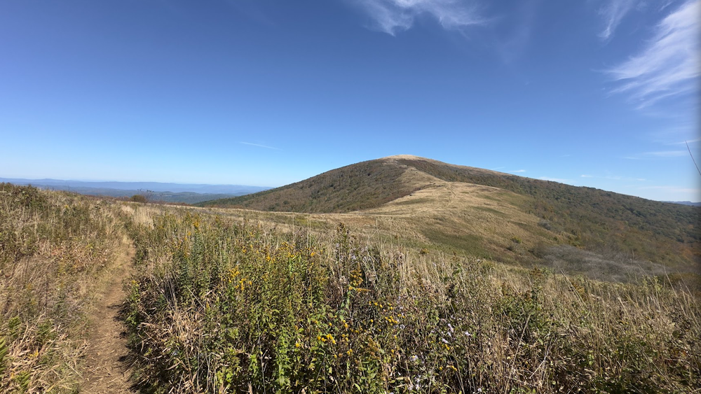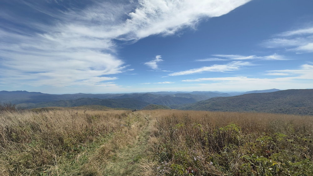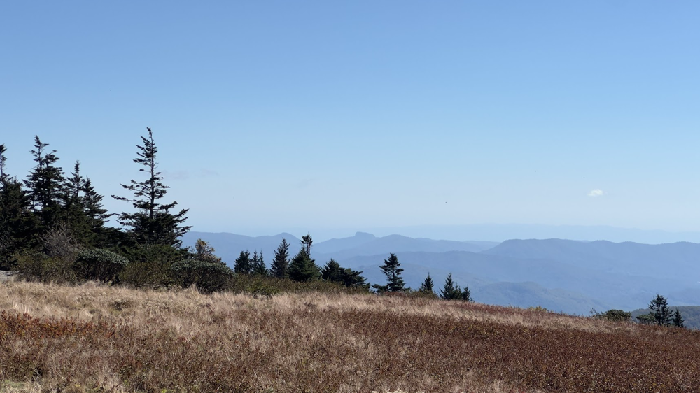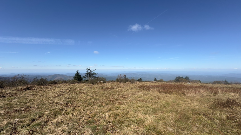 Heres the view from the top of Hump Mountain, and its mostly down from here.