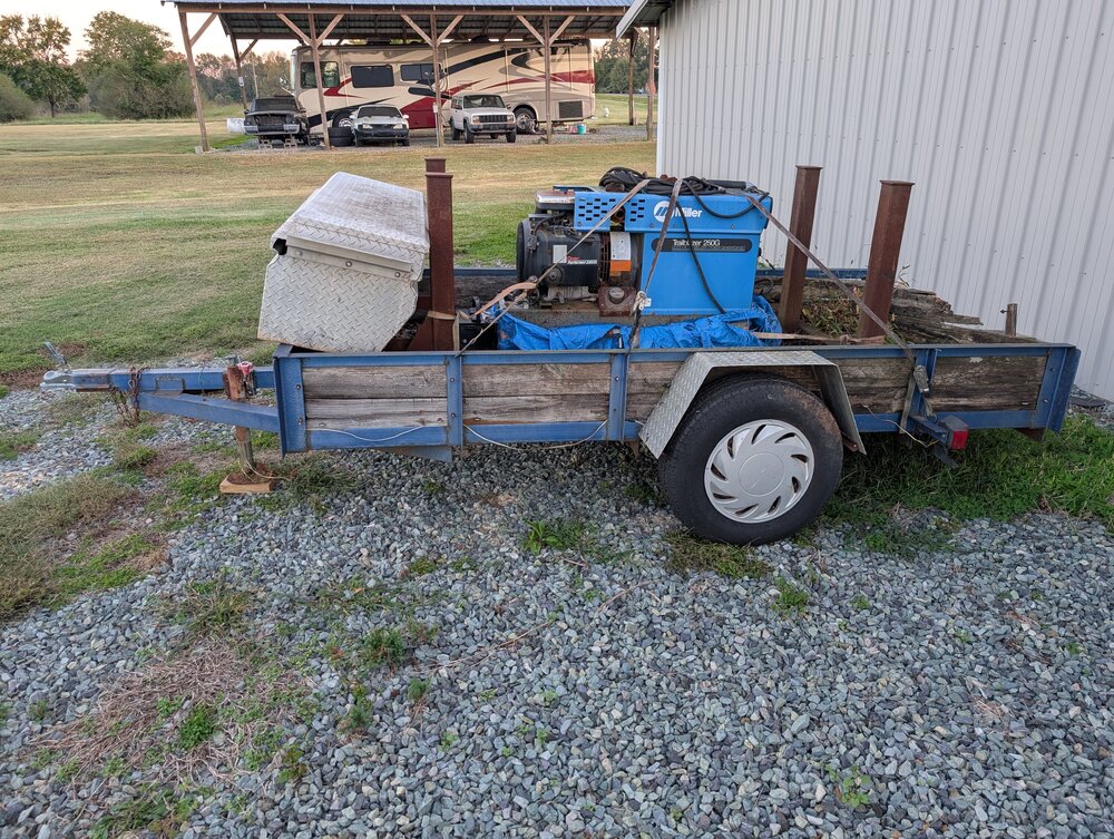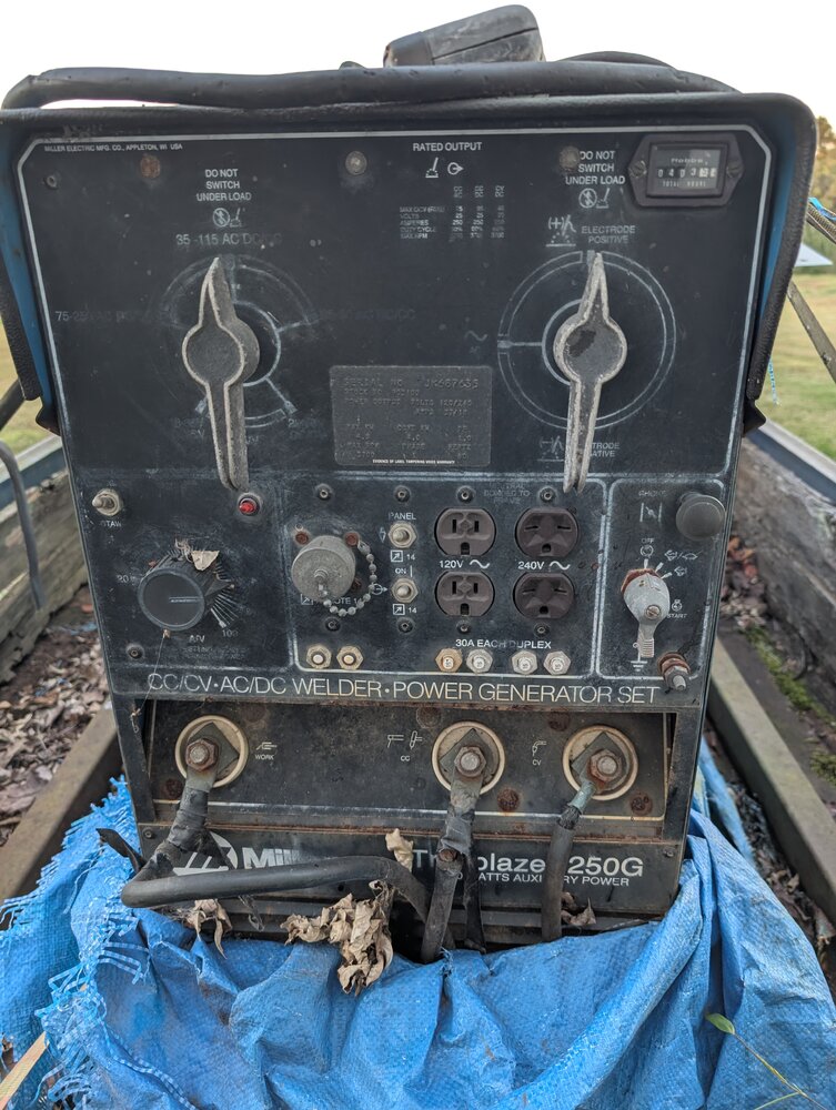Got a decent deal on a couple welders today. The Trailblazer has been sitting outside for quite awhile so it's gonna need some attention. Not locked up though and only has 403 hours on it. Maybe I'll get around to it someday. Trailer was included too.