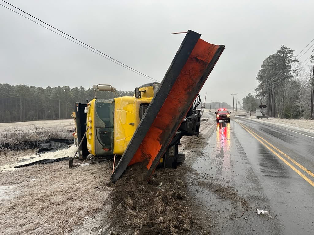 Do to the infrequent nature of our weather my first guess is inexperienced operator. Speed and very top heavy load. Couple trucks I saw out had salt piled 3 feet higher then the hopper. Recipe for disaster on dry pavement let alone plowing and possibly having to maneuver.