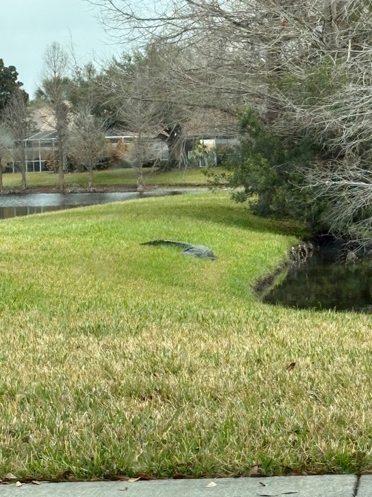 I was fishing from the bank one day and saw a gator floating about 20-30’ from me. He was staring at me like I was lunch. Then he sank down under the water out of site. TIME TO GO!!!