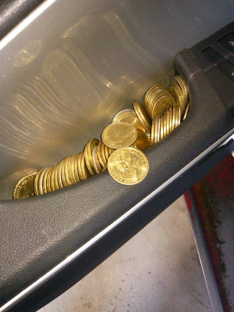 Everyone's favorite Volt was back in for service today. Yes those are gold dollars everywhere.