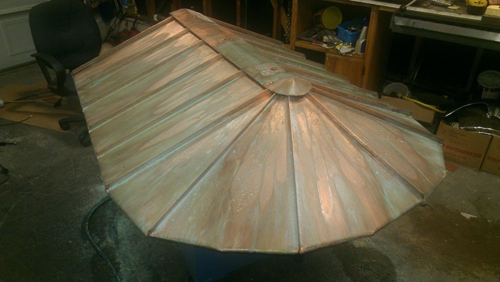 I sprayed miracle grow on a copper fire pit cover I made for a customer... made it green like it had weathered for a while.