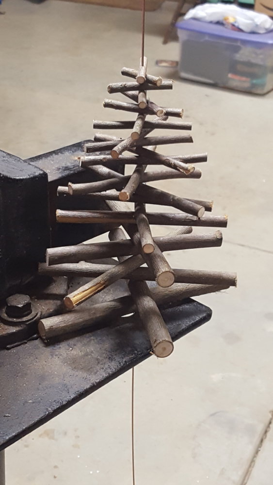 Wifey was working on some Christmas decorations yesterday. Since I'm running one handed right now, it was a good opportunity to teach her how to use the miter saw, drill press, and wire cutters. She asked if I had any solid wire about 1/16" diameter, and I said "excuse me while I whip this out!" (And she finally understands why I have a TIG welder) She cut and drilled everything herself, and bent/twisted all the wire. Ornaments are 3/32" aluminum filler wire, and the tree is 1/16" steel. She even measured the drill and tig wire with calipers with out me having to explain.