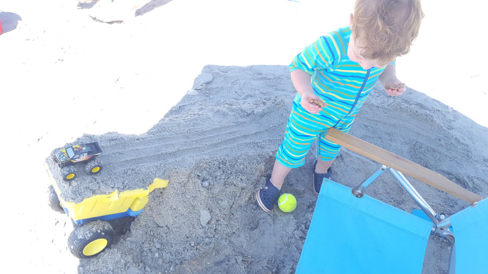 He wore those sunglasses ALL day, even when we were inside, and had that look pretty much the whole time, hahaha. It would take hundreds of dollars to make his momma that happy, but 99 cents worth of sunglasses might do it for a toddler.Baller pose.