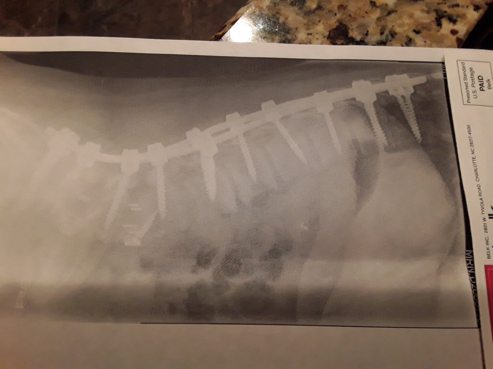 my wifes new back. made another visit to duke today for her first checkup since surgery