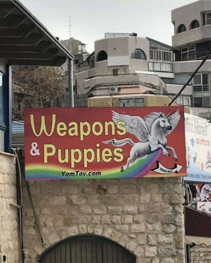 Do we try the weapons on the puppies? How does this work and where is that unicorn from?Sounds like a wonderful place.