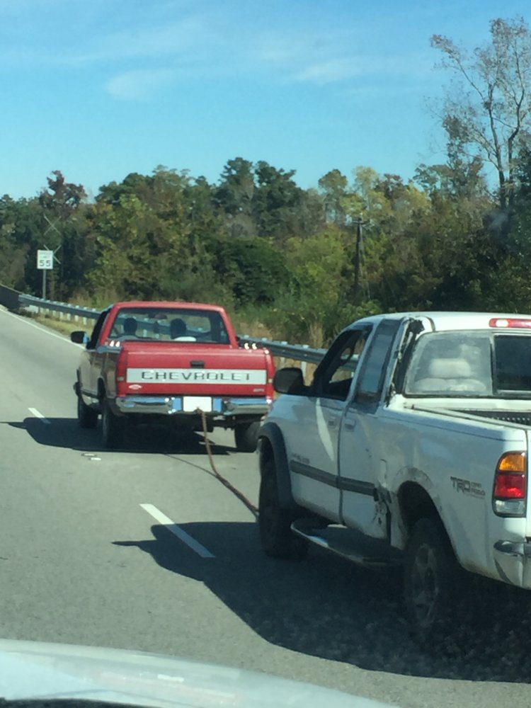 First time was my Dad pulling my '90 XJ across Cary w/ an '86 Benz sedan when I was 18.