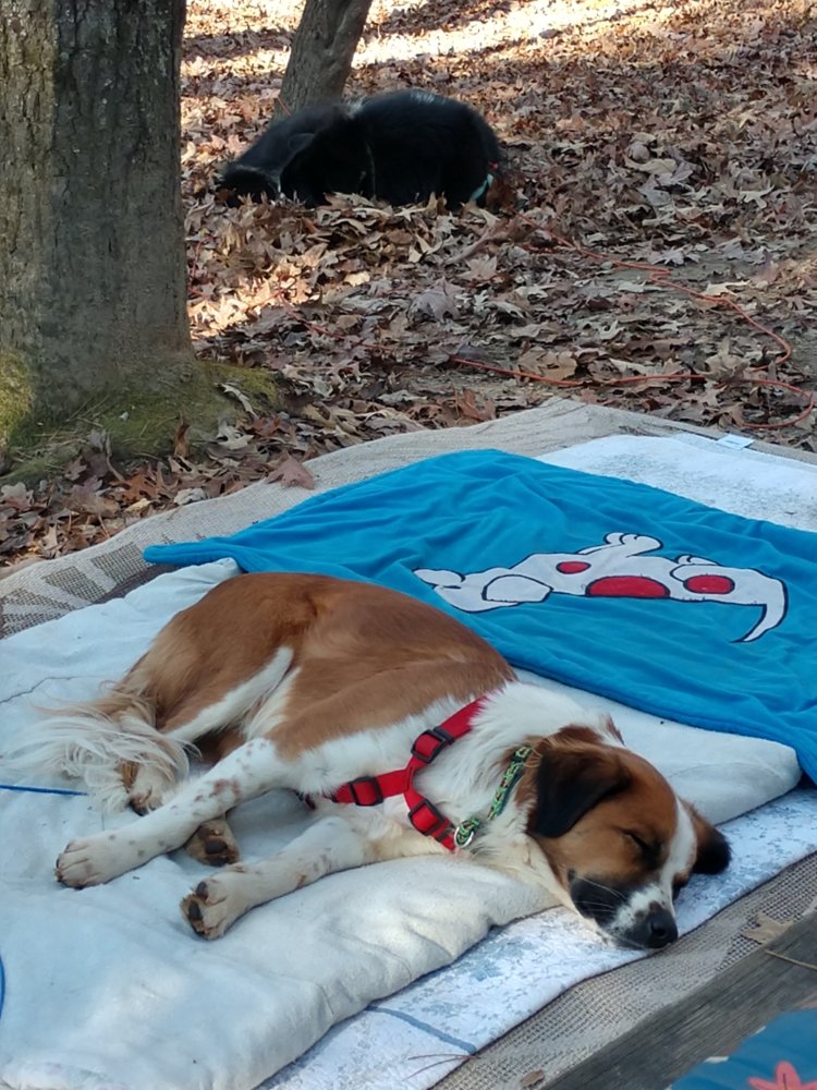 Poor Jasper has been kicked to the curb it looks like. Can’t believe you make him sleep on the ground like that.Dog tired