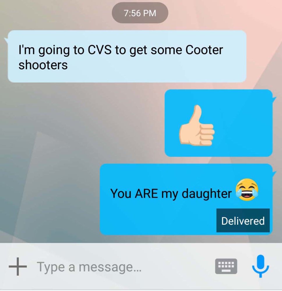 That will be my middle daughter. She can fart and joke with the best of em.My daughters communication with me last night