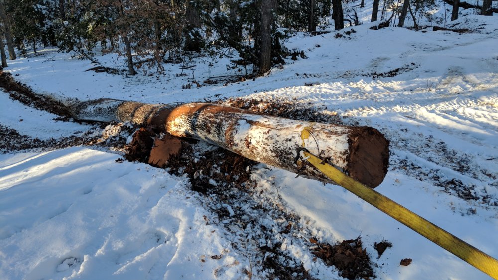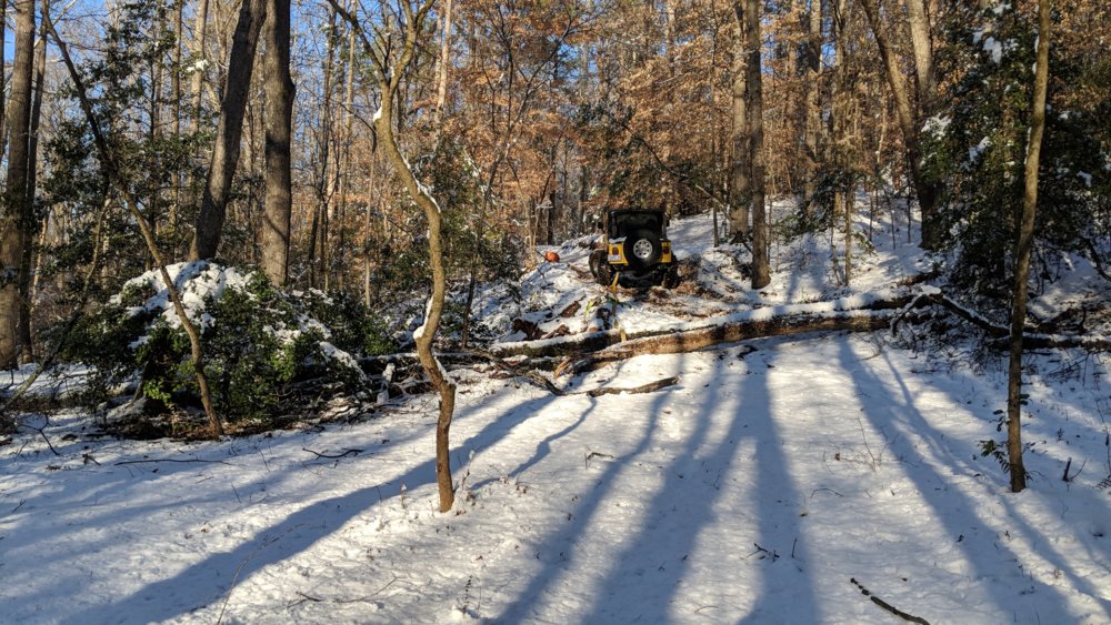 Did a little Jeep logging yesterday. Low range, 3rd gear, 3-4000rpms, uphill, in the snow, for about 1/8th of a mile, slipping and sliding all over the place, being jerked around, dodging trees, with the only objective to not lose momentum!