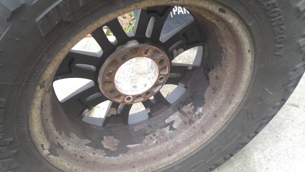 About like the chrome over alum wheels.This is why I stick w a polished alum wheel.Worlds worst powder coating job?