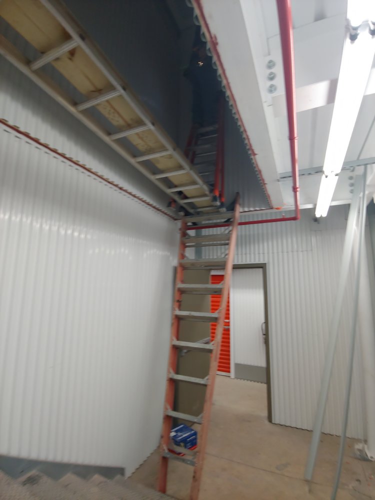 That’s some sketchy shit. That ladder you are using for a scaffolding buck isn’t designed to support the load in that manner. Hopefully you are finished and made it out safely. Just remember it only takes once to get hurt or killed doing things like that working aloft.