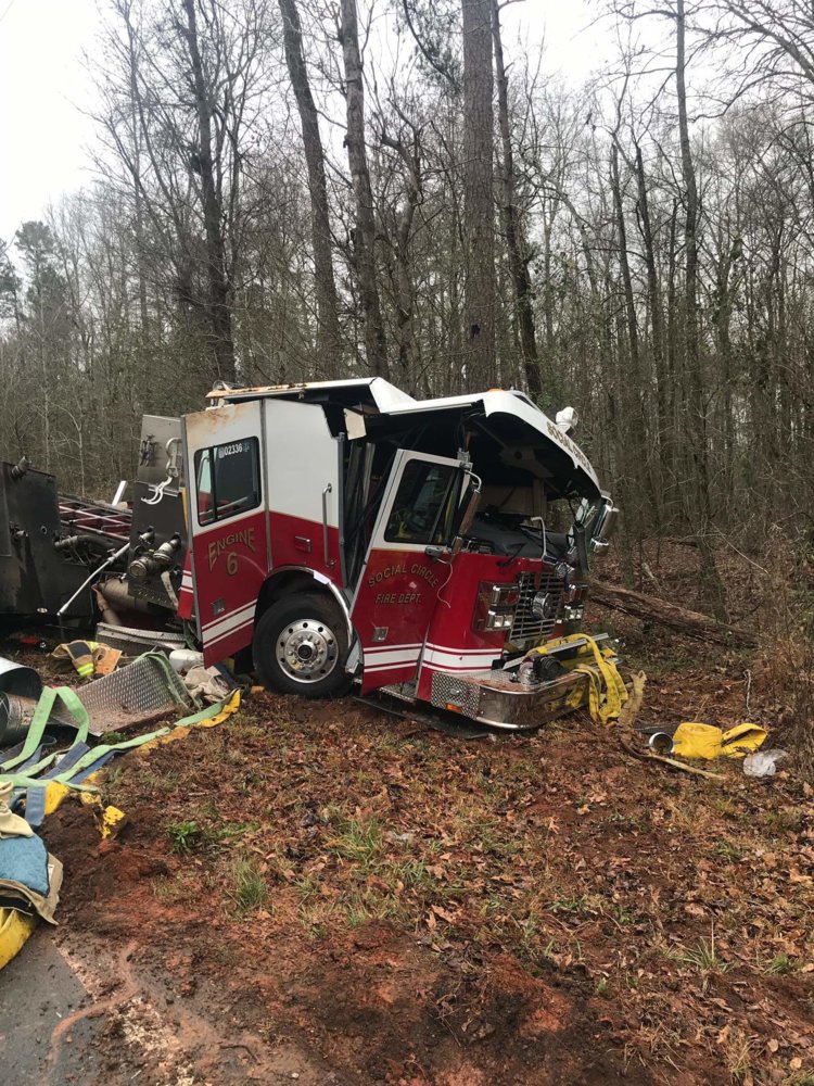 Two GA Firefighters Hurt, Fire Truck Totaled in Rollover