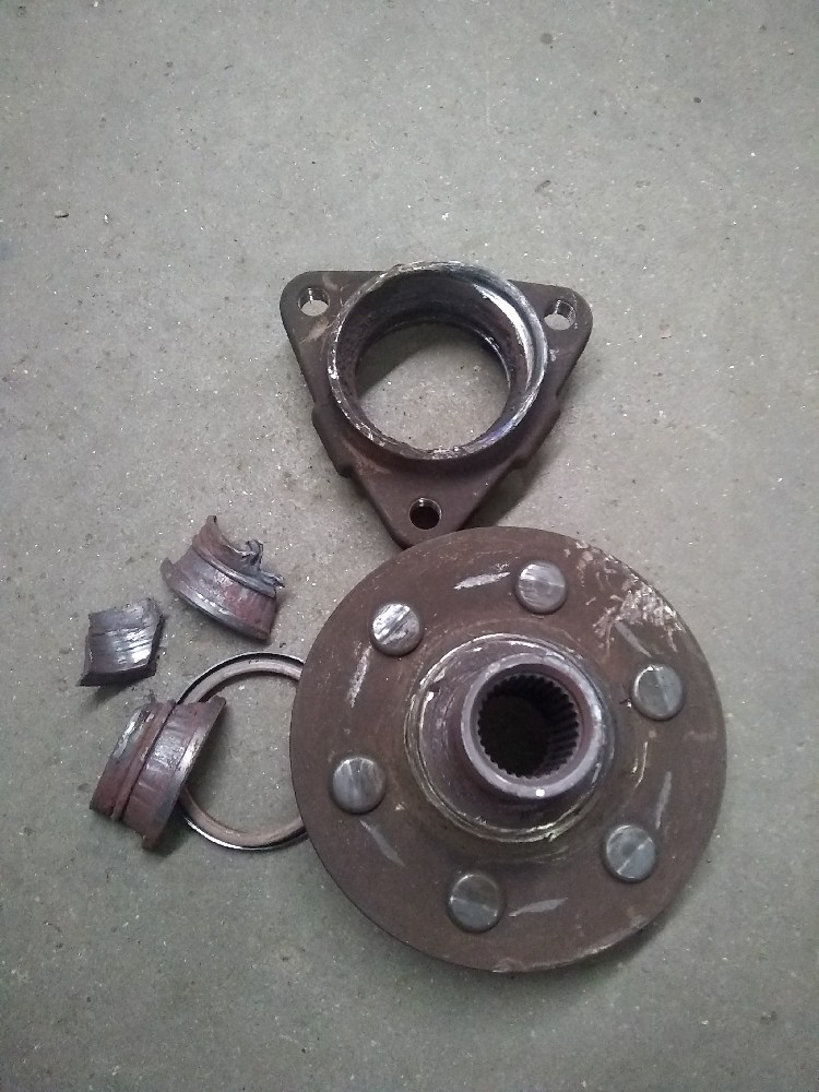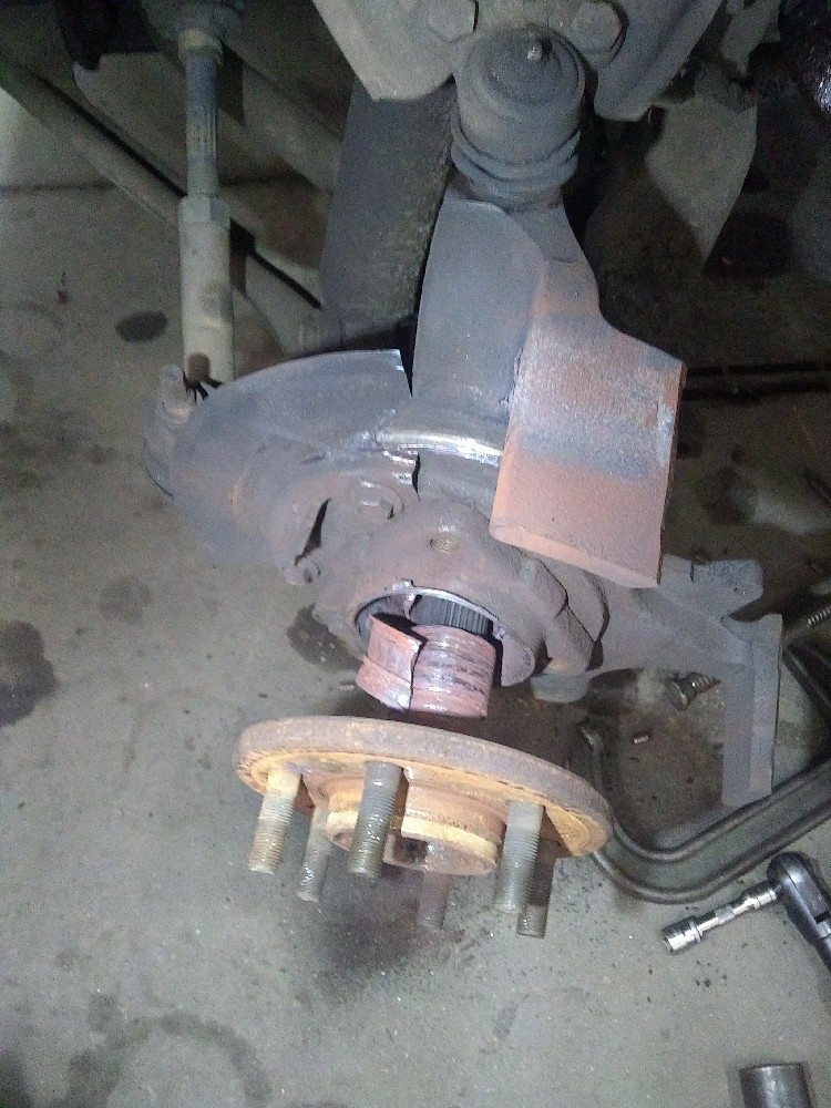 Mine was still in “one piece” when I let it down to the concrete it kind of hit the floor a bit and the center just plain fell out. I can’t believe it drove to the shop!!Yep, looks bad haha