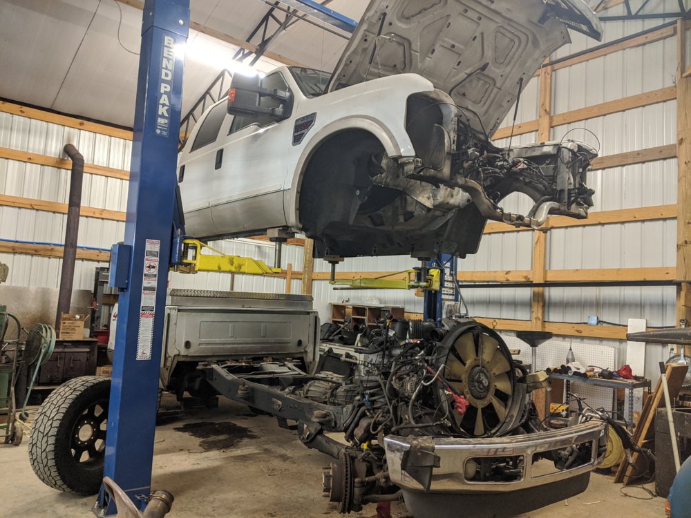 Oil pan gasket. I have no idea what or why he removed anything. My only presence was when he went to lift the cab, I wanted to be there so he didn't drop it on himself. He has tried really hard not to drag me into his project, and I appreciate that. I also made him these sweet Ford blocks:turbo? And can you leave the radiator installed, or did it have to come out?