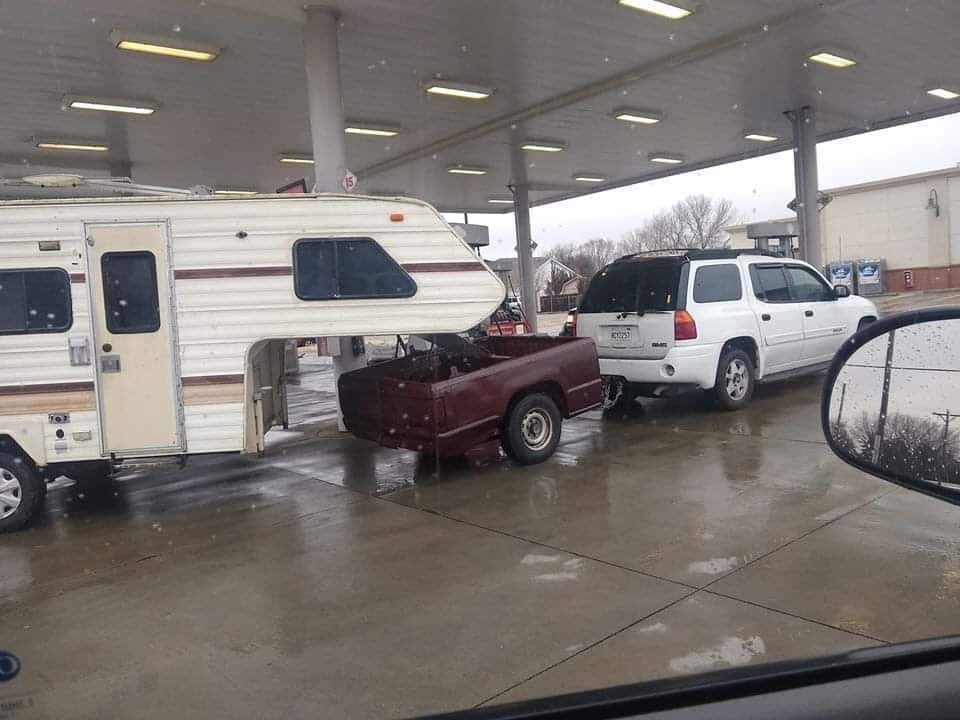 Looks like he was going for the ol Duke boys car hauler trick. He forgot that the trailer has to be a wedge to pull it off though. 6/10 for effort
