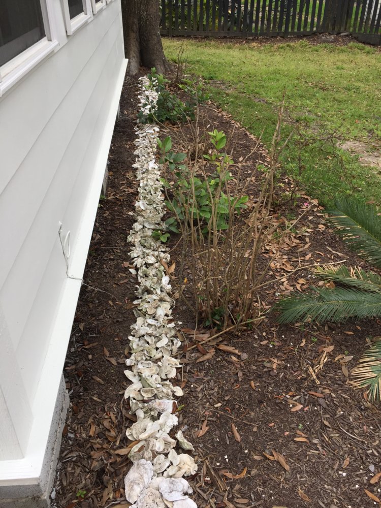 My wife has been on an oyster shell crafting kick so we have an excess of shells that have been sitting in bags not doing anything productive. I put them to use today. Hoping they help keep the dirt from splashing up on the fresh paint.
