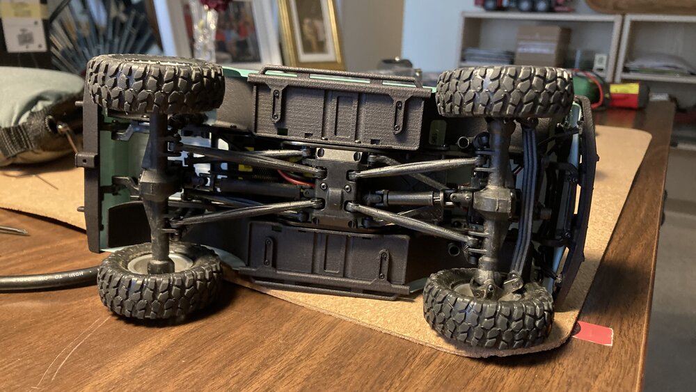 Chassis obviously, front bumper and sliders on the C10, and high clearance links on the deadbolt. I also put high clearance links on the C10. The C10 has never seen dirt, i am kind of thinking of printing a bunch of stuff for it and then see if it will sell for enough to justify selling it.