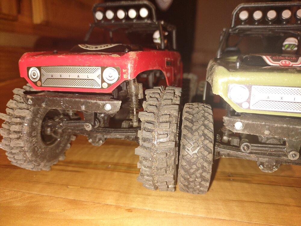 Well I drank the 1:24 scale Kool aid. There was a sale on the deadbolts ($100 instead of $125) so my boys put up $40 each and we went and got a couple. Ended up getting wheels/tires for one, but I ordered another set online for the 2nd one. I can say the RC4wd Mudslingers (Boggers) do WAY better than the stock tires.