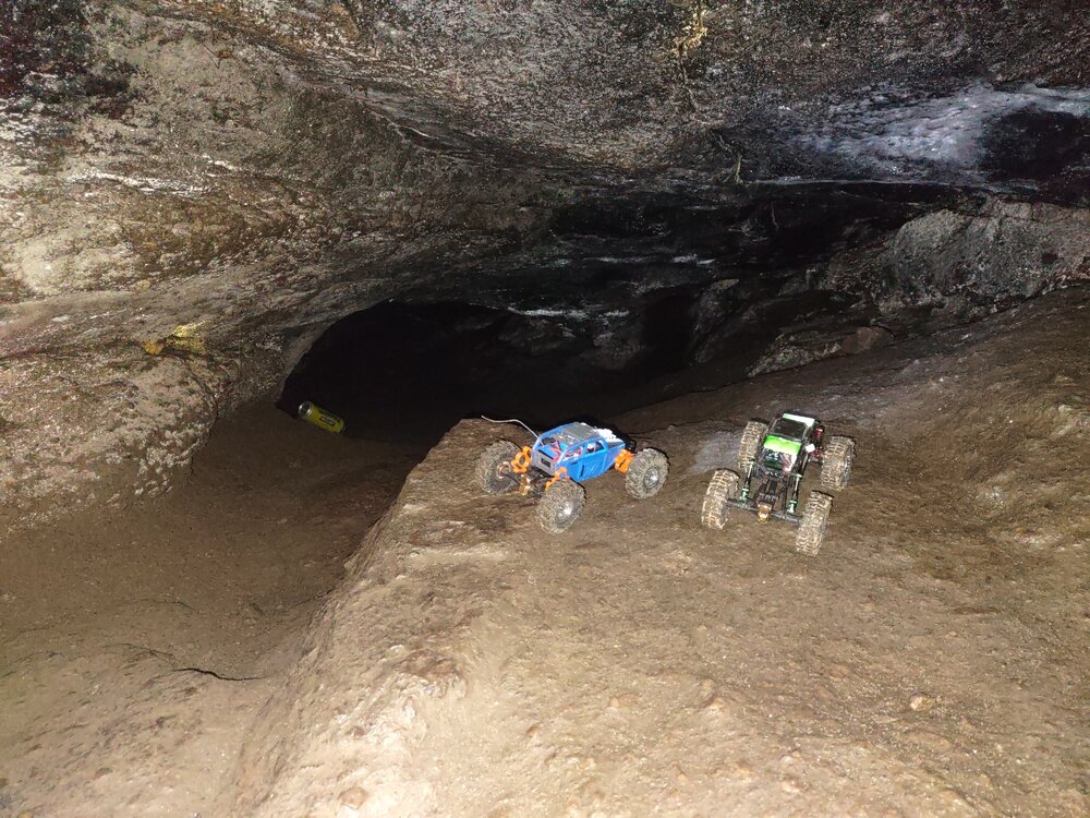 That's what's great about the 1/24 scale stuff: take it anywhere, even on your motorcycle.Rode the motorcycle to Reeds Goldmine today, stopped at Boone's cave on the way home. Awesome place to crawl for the 1/24 scale crawlers inside the cave. My son flipped his over way in the back so he had to crawl down there and flip it back over.
