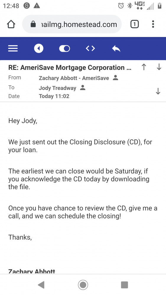 And it actually was supposed to be the 17th - which would have been 34 days total - but there was bad communication between the lender and title company, and they didn't have the docs in the hands of the agent i ntime for the apt.
