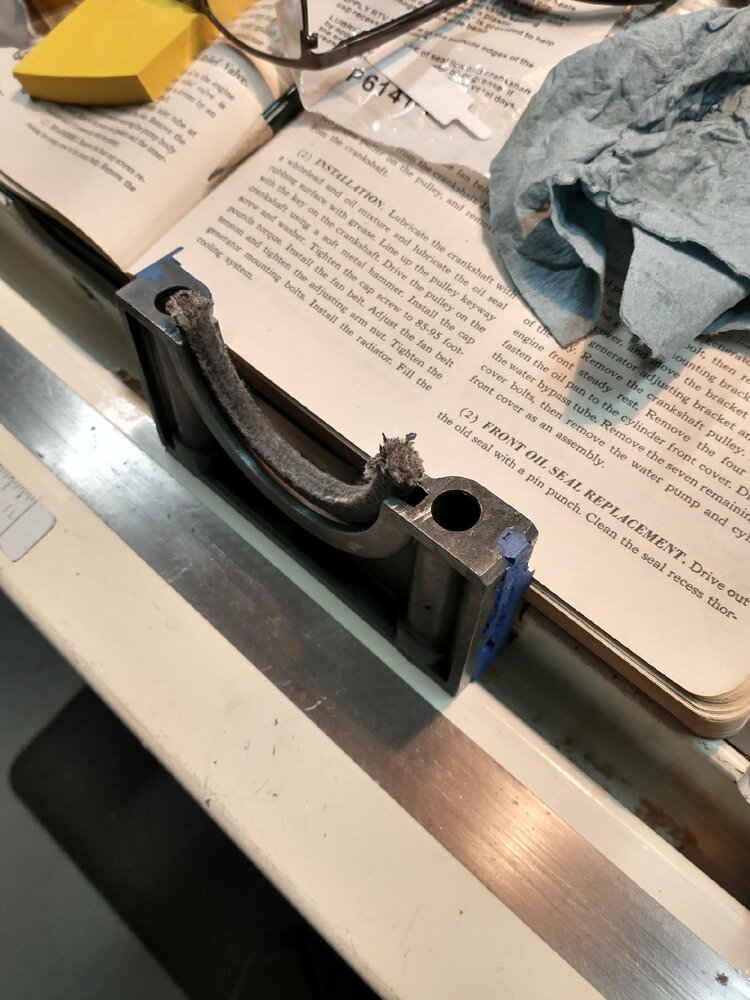 My dad is working on a 1955 Ford Y-block and when it was at the machine shop and rebuilt 20 years ago, they assembled the short block for my dad to include the rear main seal installed as a factory original rope seal. Things happened and life changed, and the car and project has sat for the better part of 20 years, everything has been inside a climate controlled building. My dad has now began to rework the project. He removed the heads and the oil pan to ensure that there was no formation of rust on anything re-lubed all parts that he could get to and has since started the engine. Everything is going absolutely fine to include compression oil, pressure and temperature, but he is having an issue of a leaky rear main seal. He lifted up the transmission just enough and was able to work the oil pan out from underneath the engine and found that the rear cap does in fact hold an oem, original style rope seal as opposed to a newer upgraded rubber seal does anybody have any idea how to push the upper rope seal up and over the crankshaft and then replace it with a new style neoprene or rubber seal? Yes the old blue rtv will be fully cleaned and new goo will be used.