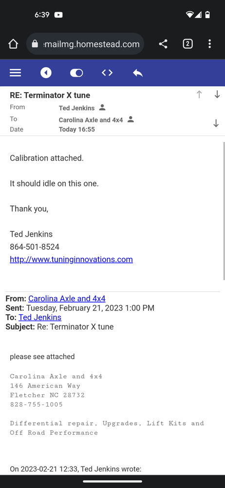 So, he's writing a new tune and emailing it over later today. He'll be up here next Saturday to do the final tuning.