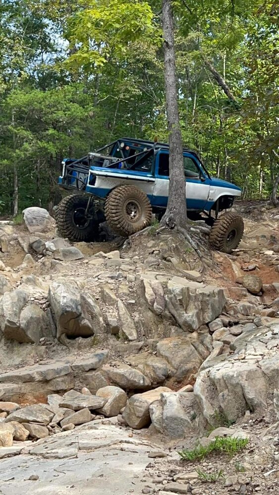 The front end went airborne when it hit a 3' ledge, when the rear hit, away went the rear diff in its entirety. I sat there, mouth wide open like a slack jawed yokel. He hops out from underneath the rig holding the driveshaft above his head like the panties in 16 Candles.