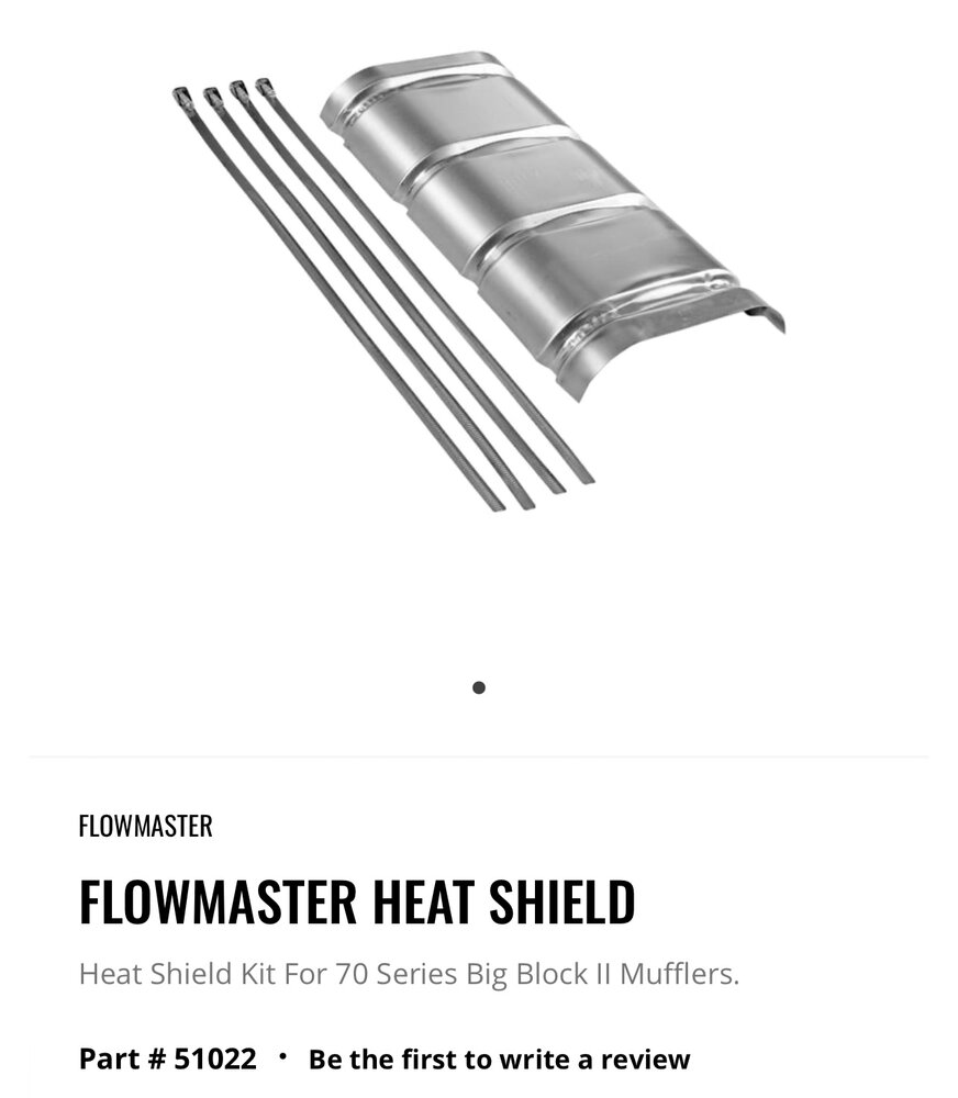 So hopefully this is the answer. I ordered one of these shields from Flowmaster. Should provide the air gap and if it’s still too warm, I’ll be ordering that same stuff you got to then wrap around the muffler and shield. Here’s what I ordered: