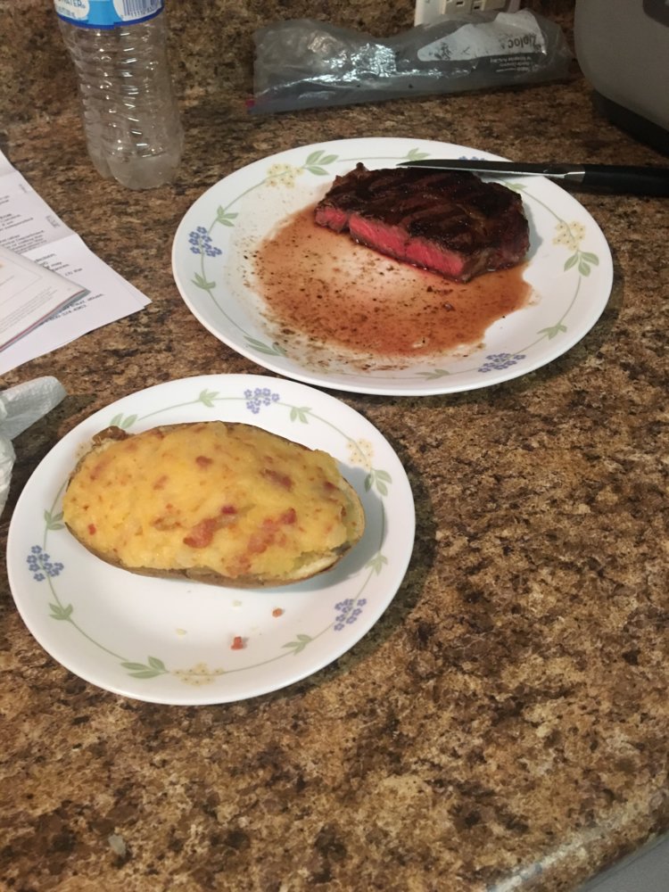 I usually wrap my filets in thick cut bacon to give a little fat and flavor. Haven't cooked filets over gas so I don't know how it would all work out. Steaks look great!Breakfast and lunch